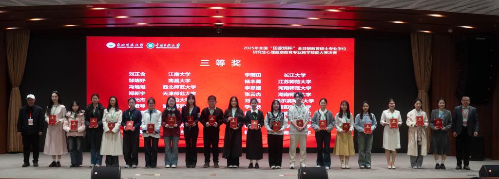 (通讯员:李韵佳)2025年10月20日,全国“田家炳杯”全日制教育硕士专业学位研究生心理健康教育专业教学技能大赛在东北师范大学圆满结束。作为该领域极具影响力的赛事,本次大赛经过初赛和决赛两轮激烈的角逐,我院4名研究生凭借扎实的专业基础和出色的教学实践能力脱颖而出,最终荣获1项一等奖和3项三等奖,充分展示了我院心理健康教育专业研究生的培养水平。