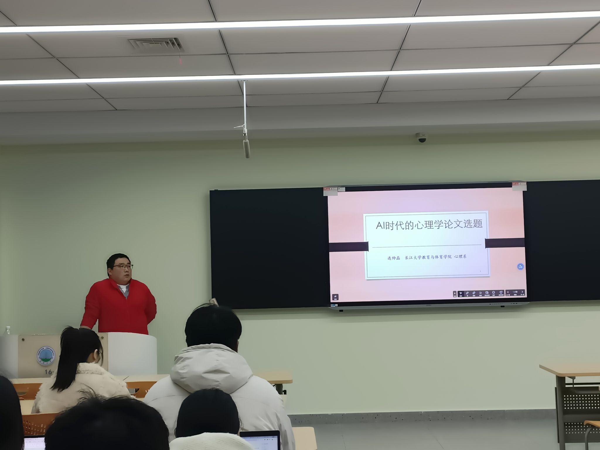 (通讯员 何巧楠)为破解研究生学术选题困境、顺应人工智能时代科研发展趋势,2026年3月17日晚,长江大学教育与体育学院“求实导师学术沙龙”在16教A区201智慧教室顺利开讲。本次沙龙由连帅磊副教授担任主讲人,围绕“AI时代心理学论文选题与写作”核心主题,结合前沿热点与科研实践,为在场研究生剖析学术研究痛点、指明选题创新方向,整场讲座干货满满、互动热烈,有效激发了学子们的科研热情。