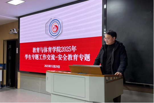 【通讯员高思远/文 耿诗涵/摄】为进一步夯实校园安全防线,强化学生安全责任意识。12月29日下午18时,教育与体育学院于文科大楼910会议室召开了2025年学生专题工作交流暨安全教育专题会。本次会议由办公室主任顾志辉主持,党委副书记何可可、辅导员高恒、陈佳琳、各班副班长兼安全委员及各寝室寝室长参会。