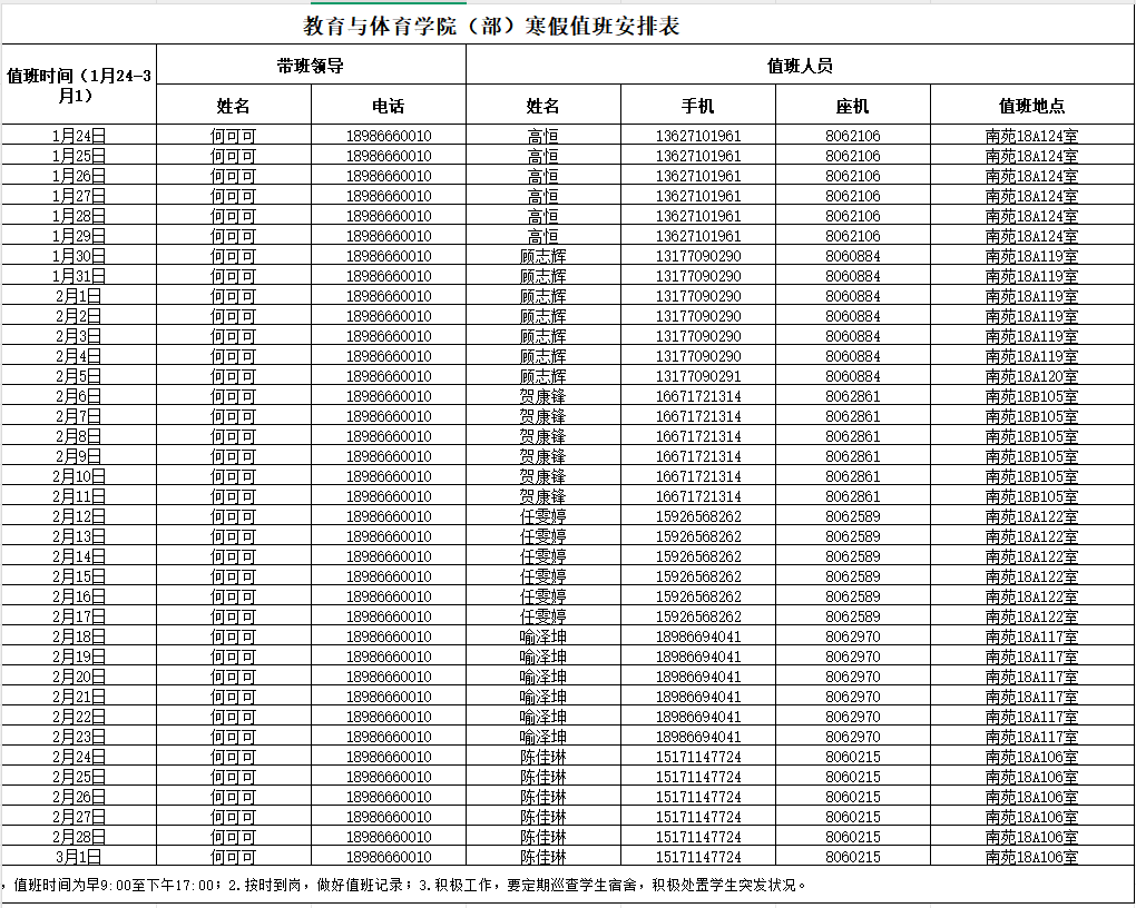 三、值班安排