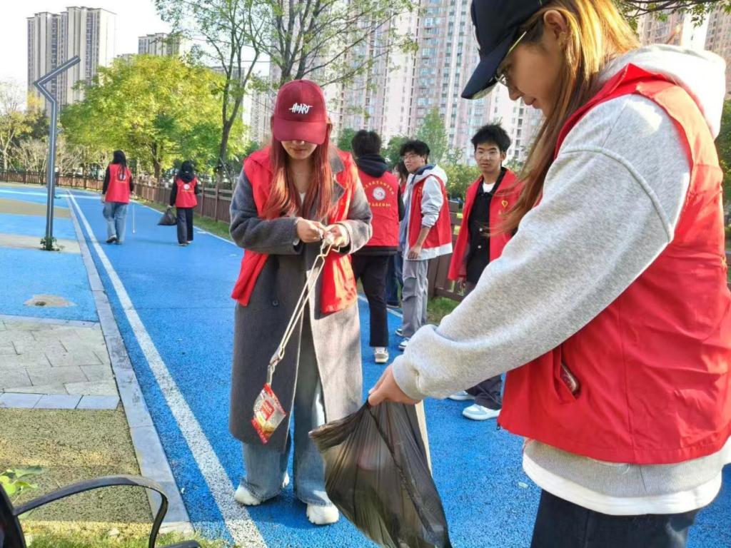 【通讯员 王磊/文 张俊/摄】10月23日下午14时许,教育与体育学院10名志愿者走进天井渊社区,开展环境卫生清扫活动,以实际行动助力社区环境提升。志愿者们积极投入、默契协作,展现出高度的责任感与团队精神,切实提升了社区环境质量,增强了居民的环保意识。