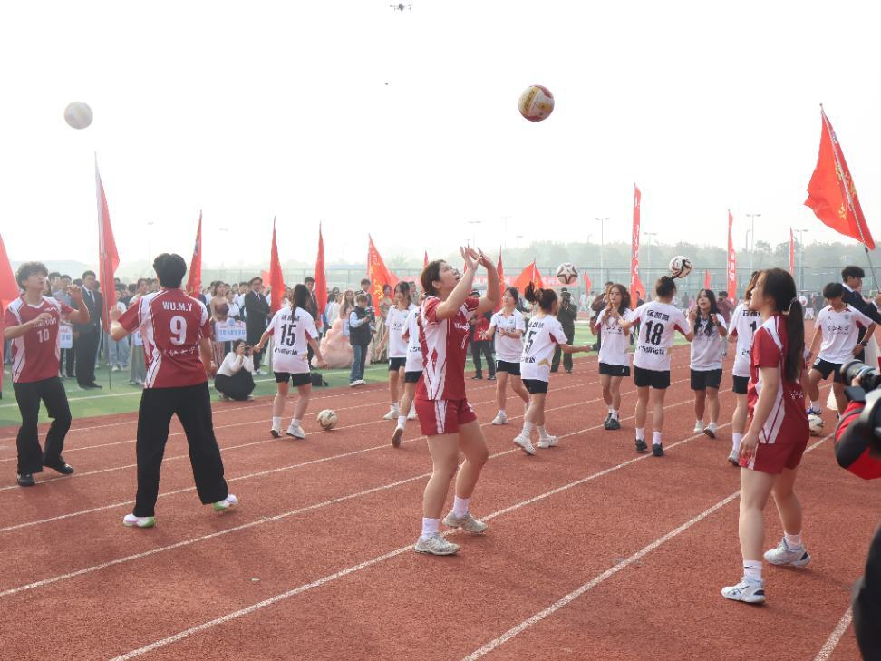 随着激昂的进行曲响起,国旗护卫队、彩旗方阵依次入场,他们热情洋溢,神采飞扬,尽显少年锋芒。紧跟其后的是各学院方阵,表演精彩纷呈,每一个方阵都独具特色,充分展示了新时代青年的蓬勃朝气和积极向上的精神风貌。教育与体育学院方阵迈着坚定的步伐入场,伴随着响亮口号,队伍依次完成致敬国旗、展示《毛概》书籍的环节;体育生随即登场,以娴熟的头顶球、颠球动作呈现特色表演。
