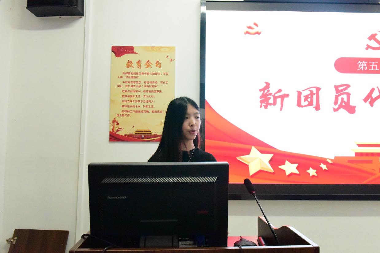 宣誓结束后,进行宣读《中国共产主义青年团章程》议程,新老团员们进一步明确自身责任与义务,深化对团组织的认知。紧接着,新团员代表叶怡繁发言,她表达了加入共青团的激动与自豪,承诺将以团员标准严格要求自己,在学习与实践中践行入团誓词;最后,老团员代表李浩然以“先行者”的身份分享成长经历,鼓励新团员在团组织中勇于担当、积极作为,用“先行者的脚印照亮后来人的道路”。