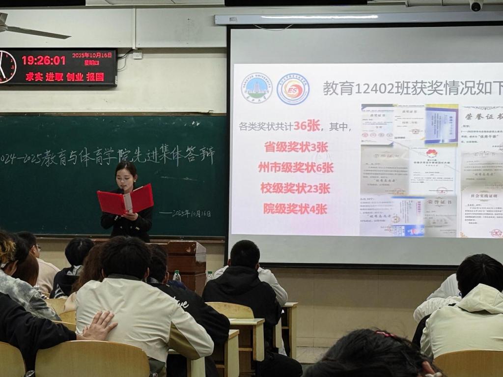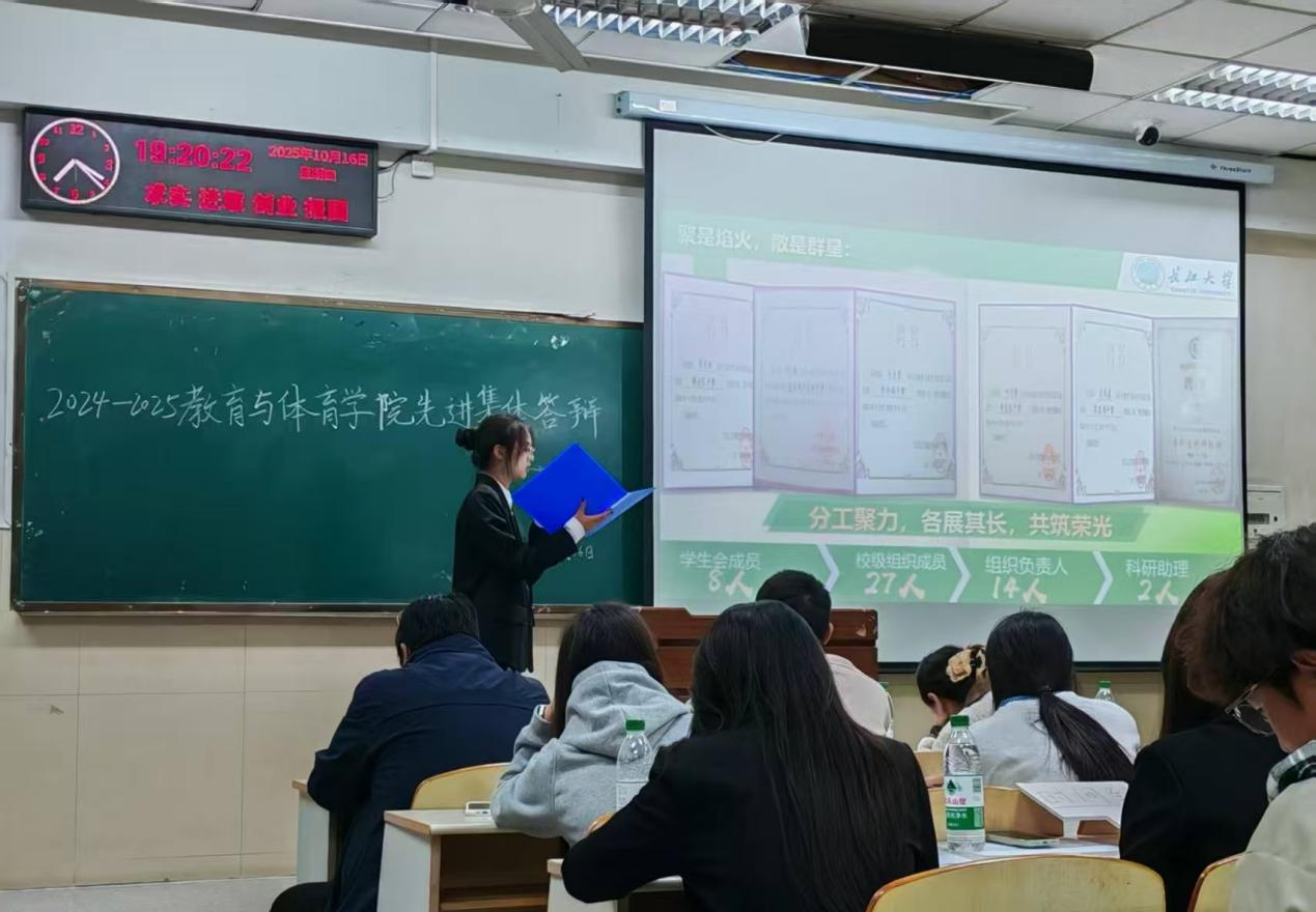 【通讯员 文豪/文 王等 罗威胤 杨雅月/摄】为深化 “立德树人” 育人理念,强化学生集体意识,营造积极向上的校园文化氛围,10 月 16 日下午 18时许,教育与体育学院先进班集体和标兵寝室答辩会在 12 教 101 教室如期举行。本次答辩会由学院团委学生会学科部干事张思思主持,班主任代表张如江老师、覃俊平老师、辅导员代表喻泽坤老师、金楚悦老师及新生班长共百余人参会。