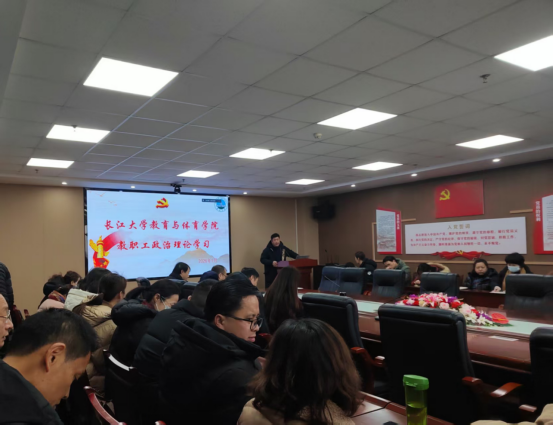 2026年1月23日,教育与体育学院一月份教职工政治理论学习活动在文科楼905会议室顺利召开,会议由学院党委书记于永伟主持,全体教职工参加。