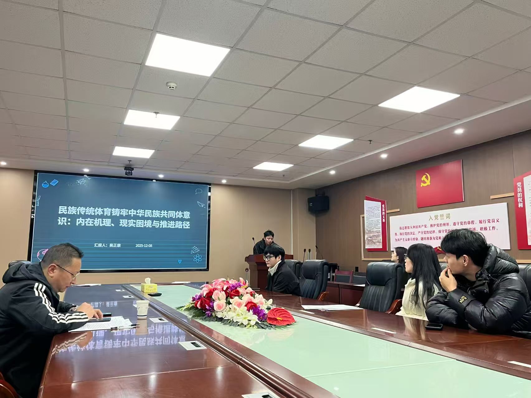 (通讯员 罗光彩)2025年12月8日晚19:00,教育与体育学院第七届研究生学术科技节研究生论坛第六场活动在文科楼905报告厅举行。本次汇报人是民族与传统体育学的研究生王小帅、王曼云、吴正康、昝俊浩、李思腾五位同学,张恒波老师出席了本场汇报。教育与体育学院2024级、2025级民族与传统体育学专业的学生前来观摩学习,院研究生会张苑苑同学主持了本场活动。