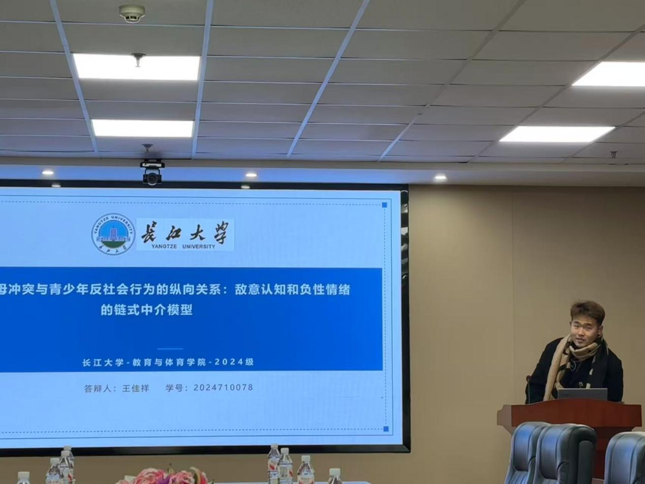 (通讯员 张凤静)2025年11月27日晚7时,长江大学教育与体育学院第七届研究生学术科技节之研究生学术论坛第一场,在文科大楼905报告厅如期举行。本次活动以构建学术交流平台、促进科研创新能力提升为目标,着力培养学生逻辑思维与学术思维,进一步推动学生学术成果产出。学院张文渊老师及心理领域研究生参加了本次论坛。